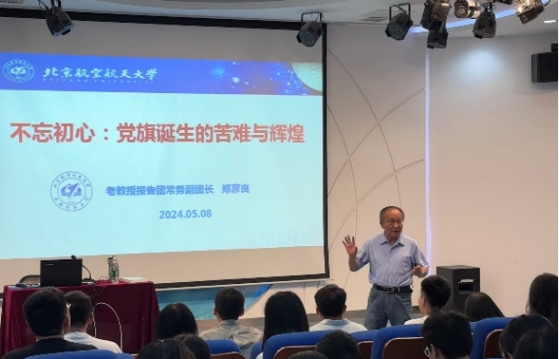 5月8日,金沙总站6165地址铸魂育人系列专题党课2024年第3期在人文讲堂举行。中国老教授协会常务理事、北航老教授报告团常务副团长郑彦良教授作题为“不忘初心——党旗诞生的苦难与辉煌”专题党课,人文公管学院党委副书记方志主持,学院师生党员和入党积极分子参加学习。