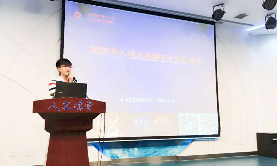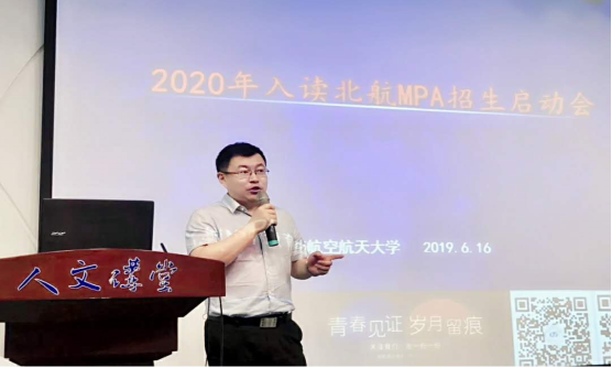 6月16日,北航公共管理学院MPA教育中心在人文讲堂举办“2020年入读北航MPA招生启动会”。参加本次活动的嘉宾有MPA中心主任章琰、王茜老师、韩梦老师、梁爽老师、靳雅楠老师以及2018级两位学生代表--天九国际投资总监李庆岩、国际注册金牌礼仪培训师刘玟君。近百名考生参加了本次招生启动会,启动会由2018级同学张同玉主持。