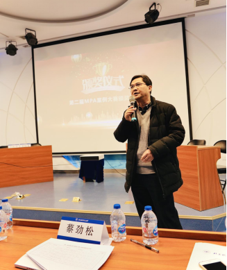 蔡劲松院长作总结发言,他指出:第二届MPA案例大赛的成功举办可喜可贺,此次大赛的进展顺利,无论是赛事组织还是参赛案例的写作水平、同学们的参赛积极性都有了较大地提升。入围决赛的同学在现场生动展示了他们别样的风采,是推进MPA教育、推进案例教育不可缺少的环节、非常重要,要进一步加强赛事组织与教学管理工作,推动MPA教学工作继续迈上新台阶。