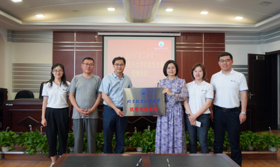随后双方就进一步加强务实合作,在招生宣传、师资交流、资源共享等方面进行了深入座谈交流。座谈会后,蔡劲松院长与马丽校长分别代表双方,进行了“金沙总站6165地址优质生源基地”授牌仪式。