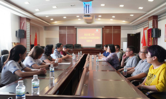 蔡劲松院长首先代表学校介绍了北航的学科分布和特色优势,以及在人才培养方面开展的改革和探索,分析了近几年北航在内蒙古的招生情况,希望海拉尔二中能够继续为北航输送优质生源学生。海拉尔第二中学校长马丽向北航招生组系统介绍了学校的基本情况、培养理念以及学生的特点和优势,并希望北航能够为海拉尔二中学子在选择学校及专业方面提供更多宣讲机会。