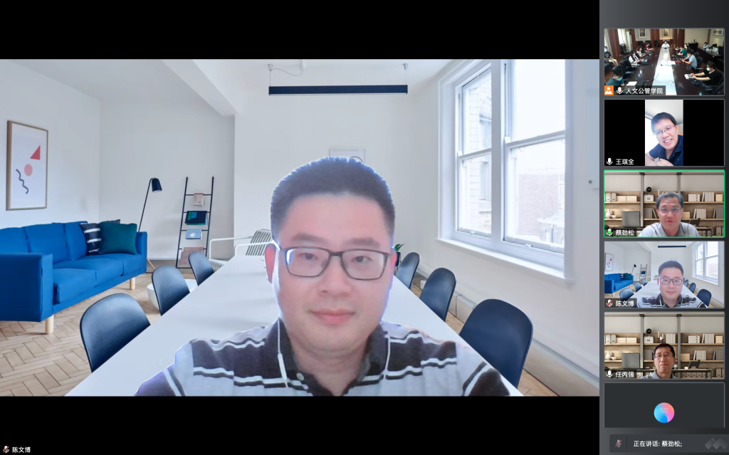 陈文博副院长希望各位同学能够放松心态,保持积极向上的状态。虽然面临着风险挑战,但是对于人文社会学科的同学们来说也开放了机会和窗口,勉励同学们能够积极面对这段宝贵的人生经历,去拥抱和享受变化。