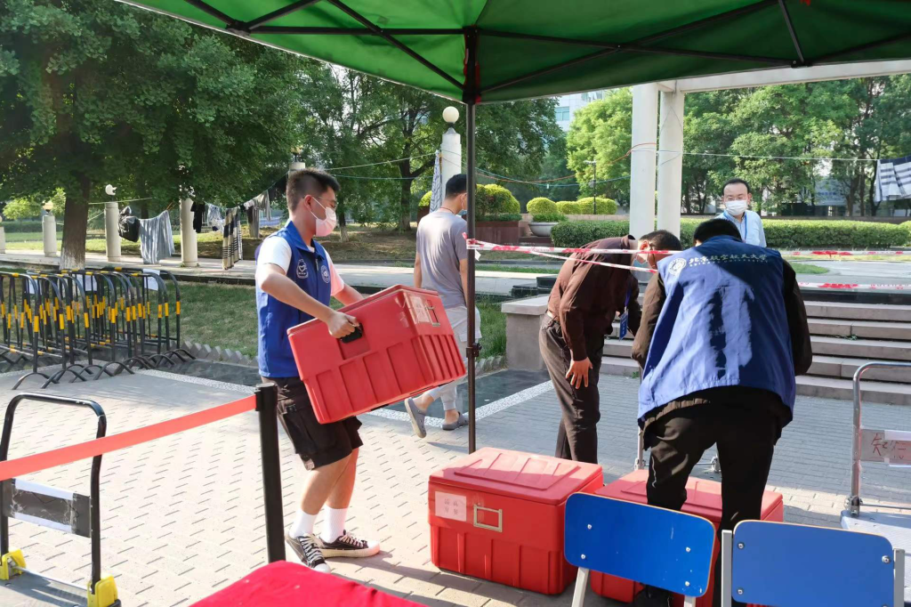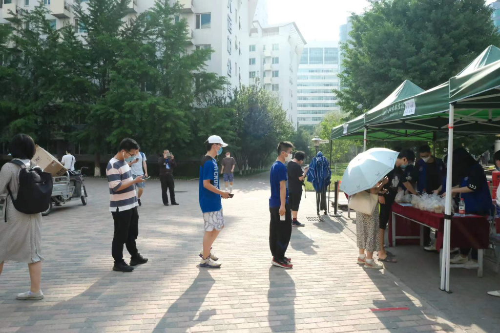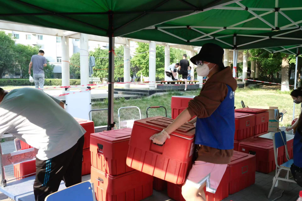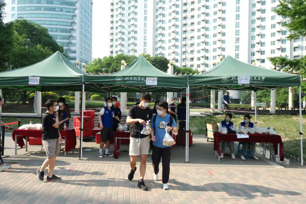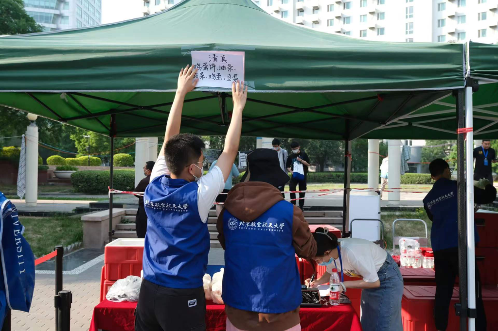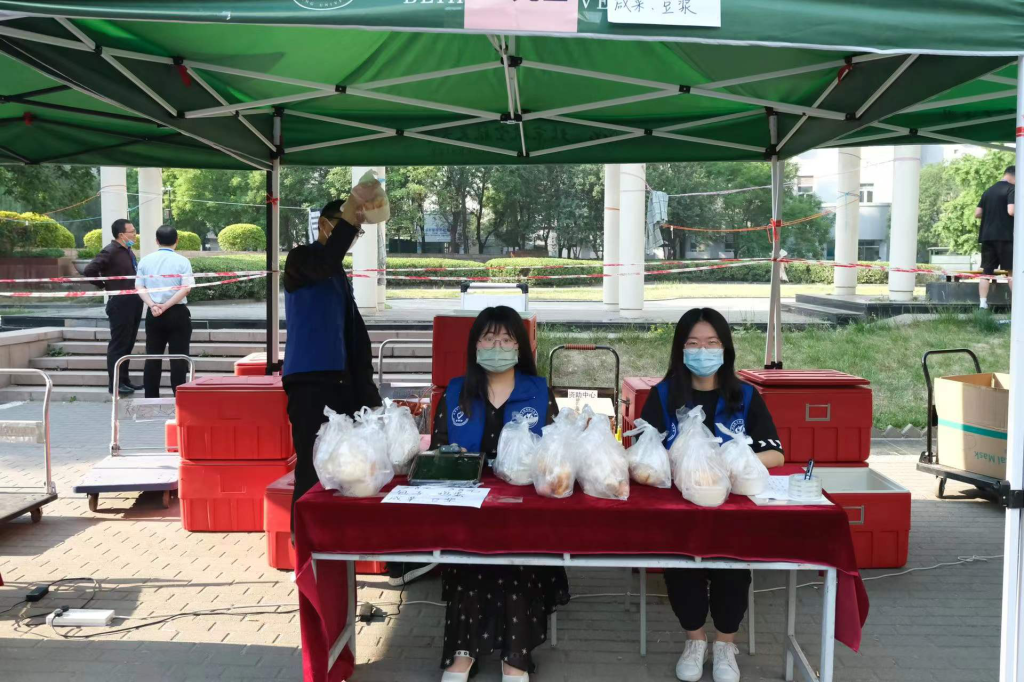 2022年5月23日,在海淀区疫情管控升级,北航“取消堂食,改为打包”的第一天,人文学院本科生第二党支部党员同志们积极响应学校“自我管理,自我服务”的号召,全力配合大运村早餐供应保障试运行工作。