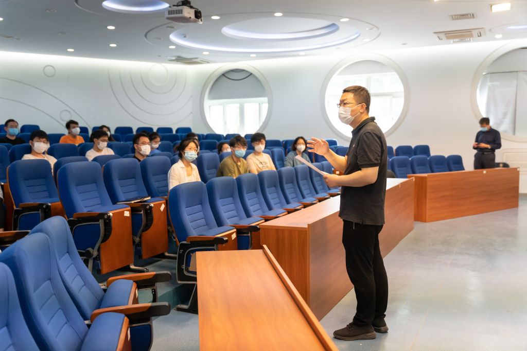 在人文讲堂,吕卫锋副校长表示,自闭环管理以来,学工队伍团结一致、尽锐出战,为学校做好疫情防控工作做出了巨大贡献。他代表学校向所有奋战在一线的学工干部致以最诚挚的问候和感谢。